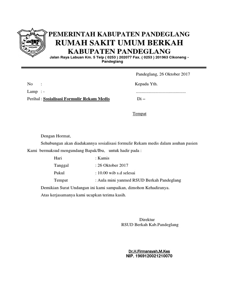 Contoh surat undangan rapat resmi. 100%(1)100% found this document useful (1 vote). Di kesempatan kali ini dosenpintar.com akan membagikan artikel mengenai tentang contoh surat undangan yang meliputi. Ada dua jenis surat undangan yaitu surat undangan tidak resmi dan resmi. Jika anda bekerja di bagian administrasi kegiatan surat menyurat adalah hal yang biasa karena itulah, kami memberikan beberapa contoh format undangan resmi yang bisa digunakan untuk beberapa acara, misalkan pengajian, rapat, seminar, atau yang lainnya. Contoh surat undangan rapat panitia halal bihalal. Bapak/ibu peserta kumpulan korban sapi. Contoh surat undangan resmi dan tidak resmi. Contoh surat undangan resmi mengahdiri acara dibuat dan ditujukan bisa kepada individu atau sebuah kelompok dalam perusahaan sehingga memang biasanya ketua atau kepala sekolah yang di undang tidak bisa hadir disinilah akan di ganti dengan perwakilanya. Untuk itulah surat undangan rapat sangat diperlukan. Atas perhatian dan kehadiran kami ucapkan terimakasih yang. Download contoh surat undangan rapat. Melalui surat ini kami mengharapkan kehadiran bapak/ibu pada :